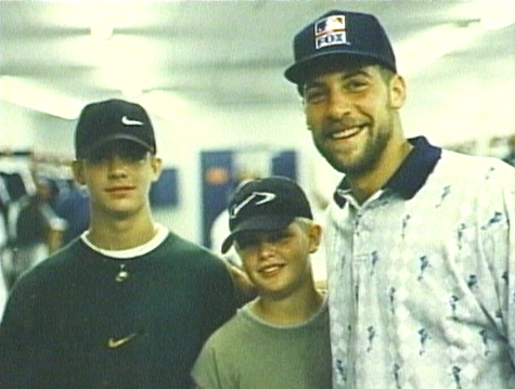 He’s been pitching for my Braves as long as I can remember rooting for them, and watching the ovation he received at Turner Field tonight after #3,000 brought tears to my eyes. It also made me extra-happy that my baseball boyfriend Brian McCann is catching the game – he’s from Georgia and grew up watching Smoltz and dreaming about catching him, and that he gets to do it on such an historic night must be a great feeling for him. I found this picture a couple years ago online – Smoltz meeting McCann when he was just a kid (that’s Brian in the middle):