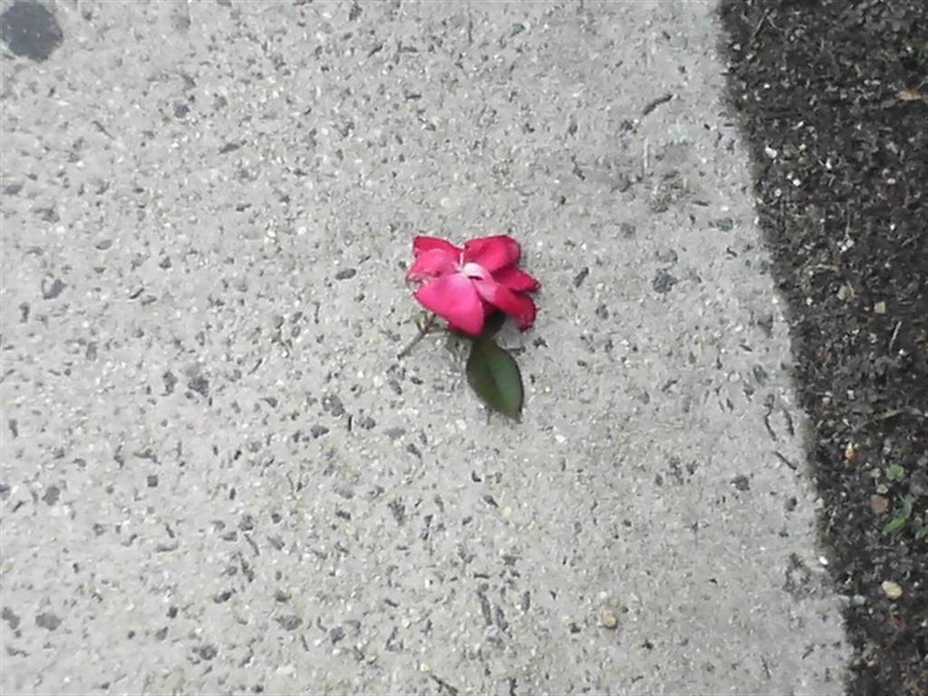 This flower was on the ground, but all of the plants surrounding it were all green – there wasn’t a flowering bush in the bunch, so I thought about how it might have ended up there.