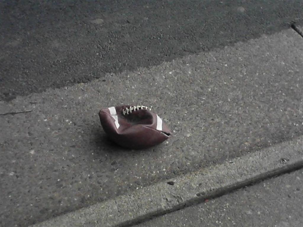 This football, laying in the street next to the curb, made me a little sad. I wondered about the person who lost it, and hoped it wasn’t a kid.