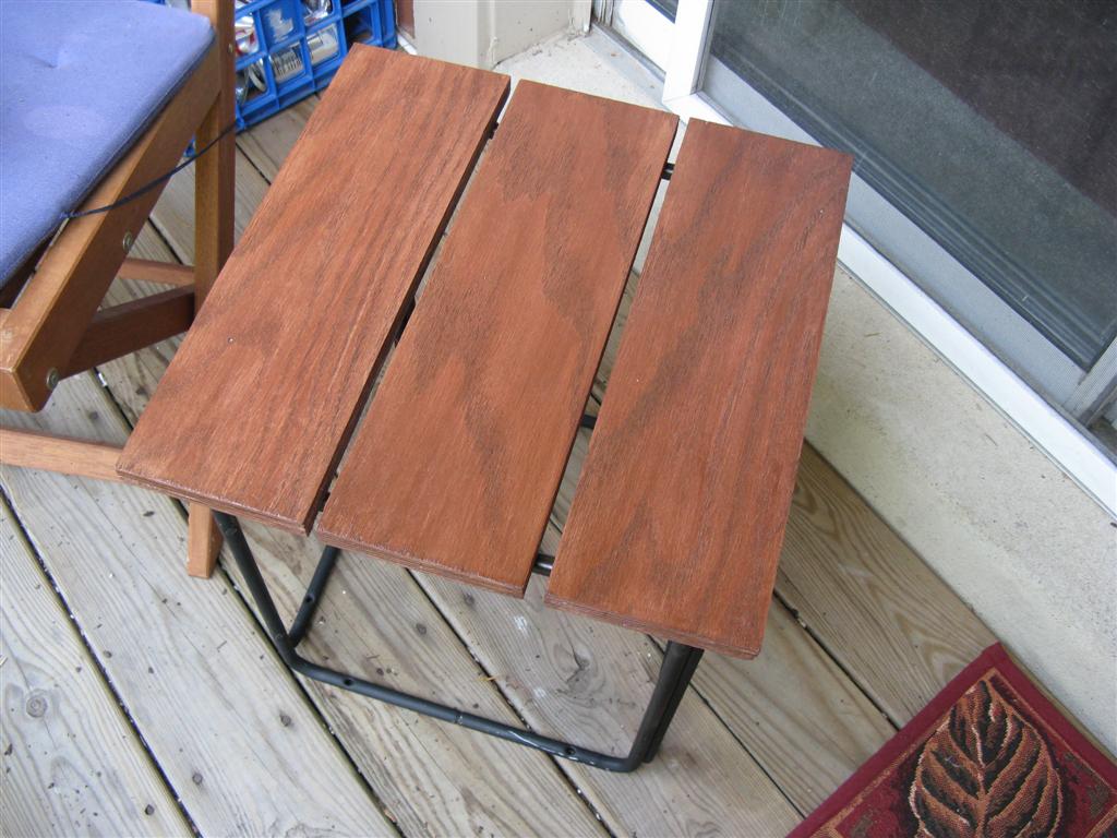 7. When I was in Greensboro a couple weeks ago, my grandmother offered me some square stools that were part of a set. I told her I would take one and see if Nate could make me a table out of it for my balcony. I stopped in Richmond on the way home on Memorial Day, and told Nate what I wanted and he made it for me in less than an hour – I love that guy! He unscrewed the seat part, measured the base, did some calculations, cut some plywood and screwed the wood onto the base. So easy. When I got it home, I stained and sealed it, and it’s perfect: