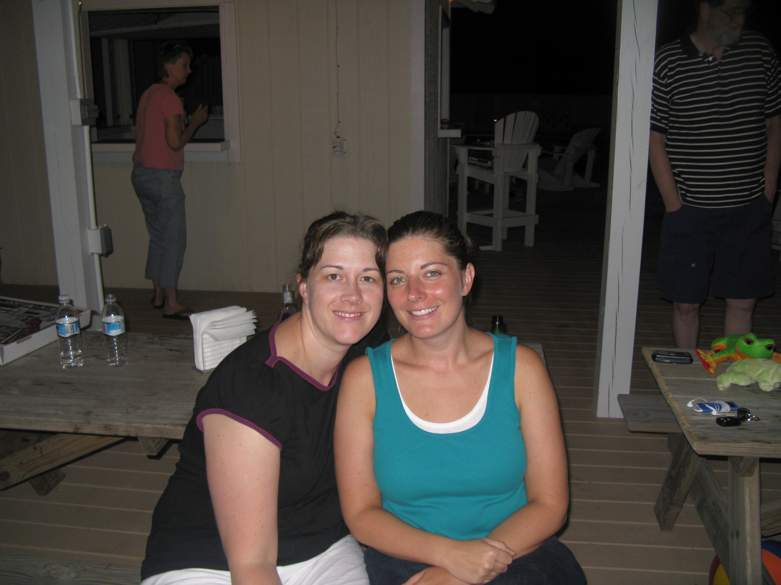 We walked down to the Boardwalk for a little bit and watched the lightning flash over the ocean, which was very cool. Then we headed to a bar where Aimee ordered a margarita as big as her head and I had something called a Moon Doggie, which was spiced rum, blue curacao, and strawberries in a frozen concoction, and it was yummy.