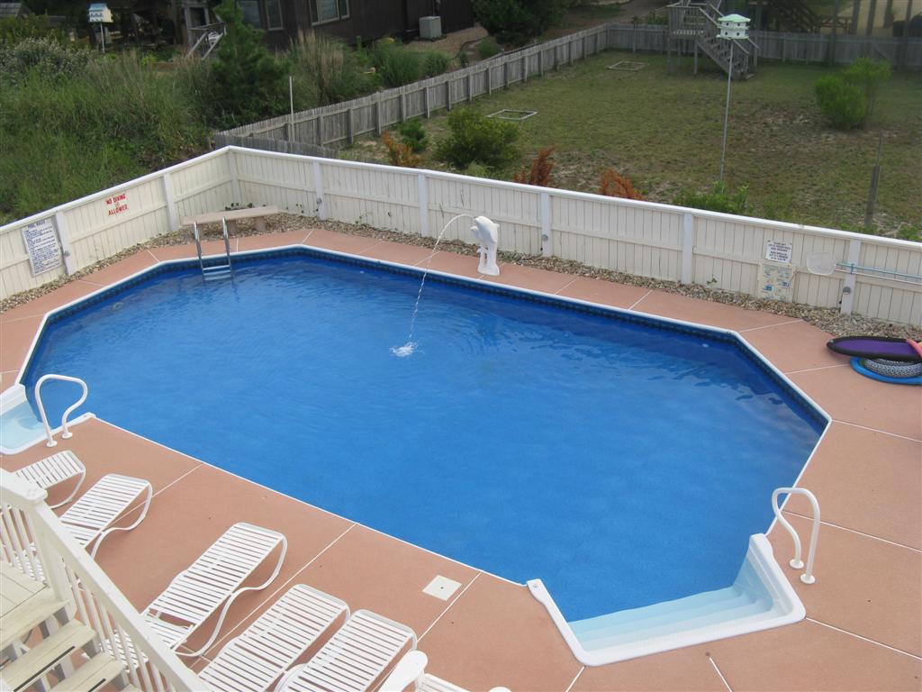 This was the house Aimee’s family is renting for the week – it’s 9 bedrooms and 5 (I think) bathrooms, with a hot tub, a cabana, a big deck on the top, and this beautiful pool: