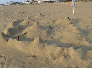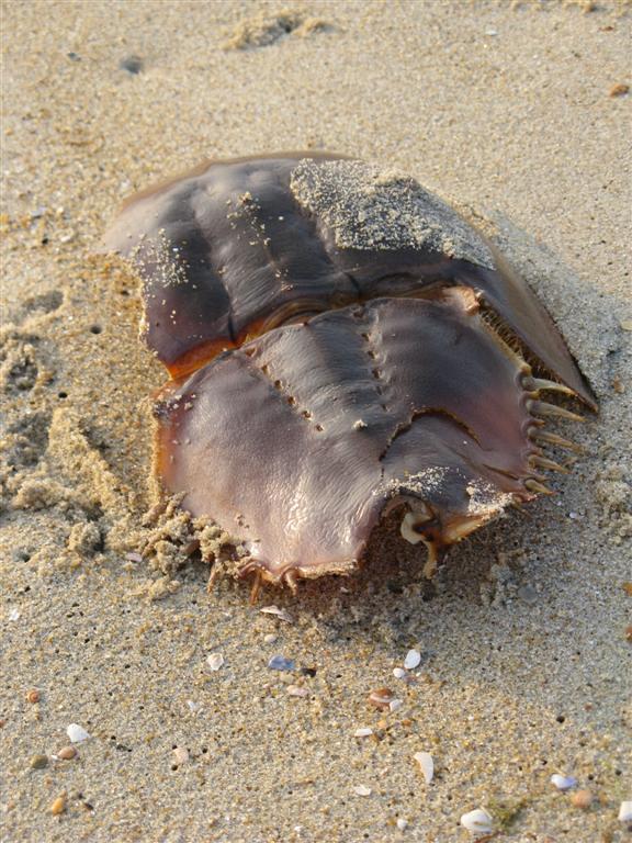 We headed home exhausted, and I was up again for the sunrise on Monday, although a little later. I saw pelicans dive bombing for their breakfasts, a dead horseshoe crab, some jellyfish, leftover sand castles, and much more.