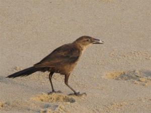 Then I headed to the beach to lay out. I was lying on my stomach, and I lifted my head up for some reason, and all of a sudden, it was like Night of the Living Dead – all the little sand crabs peeked their heads up out of their holes and started skittering around. It was so weird, like the sand was moving. As soon as I reached for my camera, they all darted back underground. Eventually, I was able to capture this little guy on video: