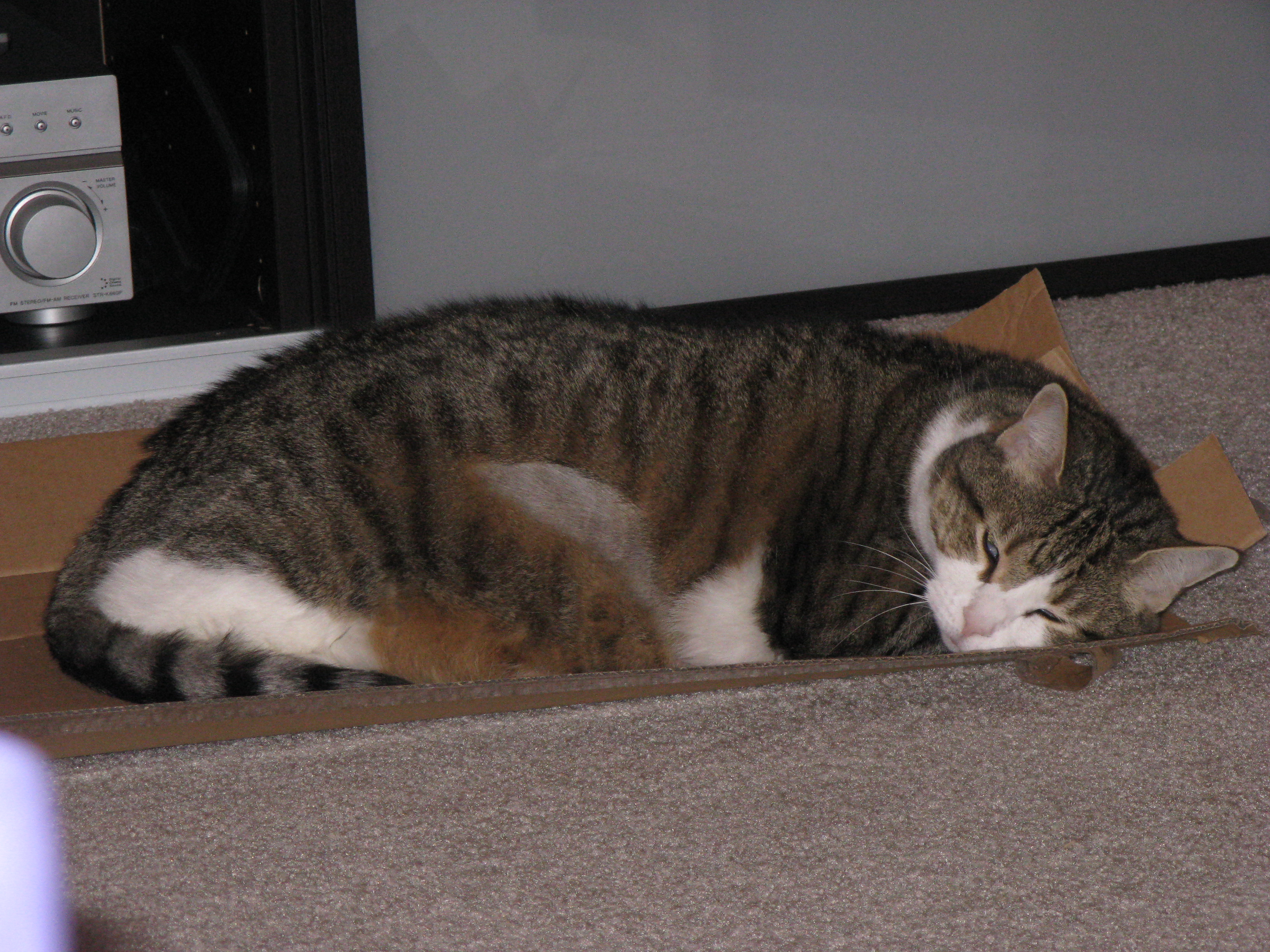 He doesn’t even fit in his bed!  He probably should go on a diet . . .