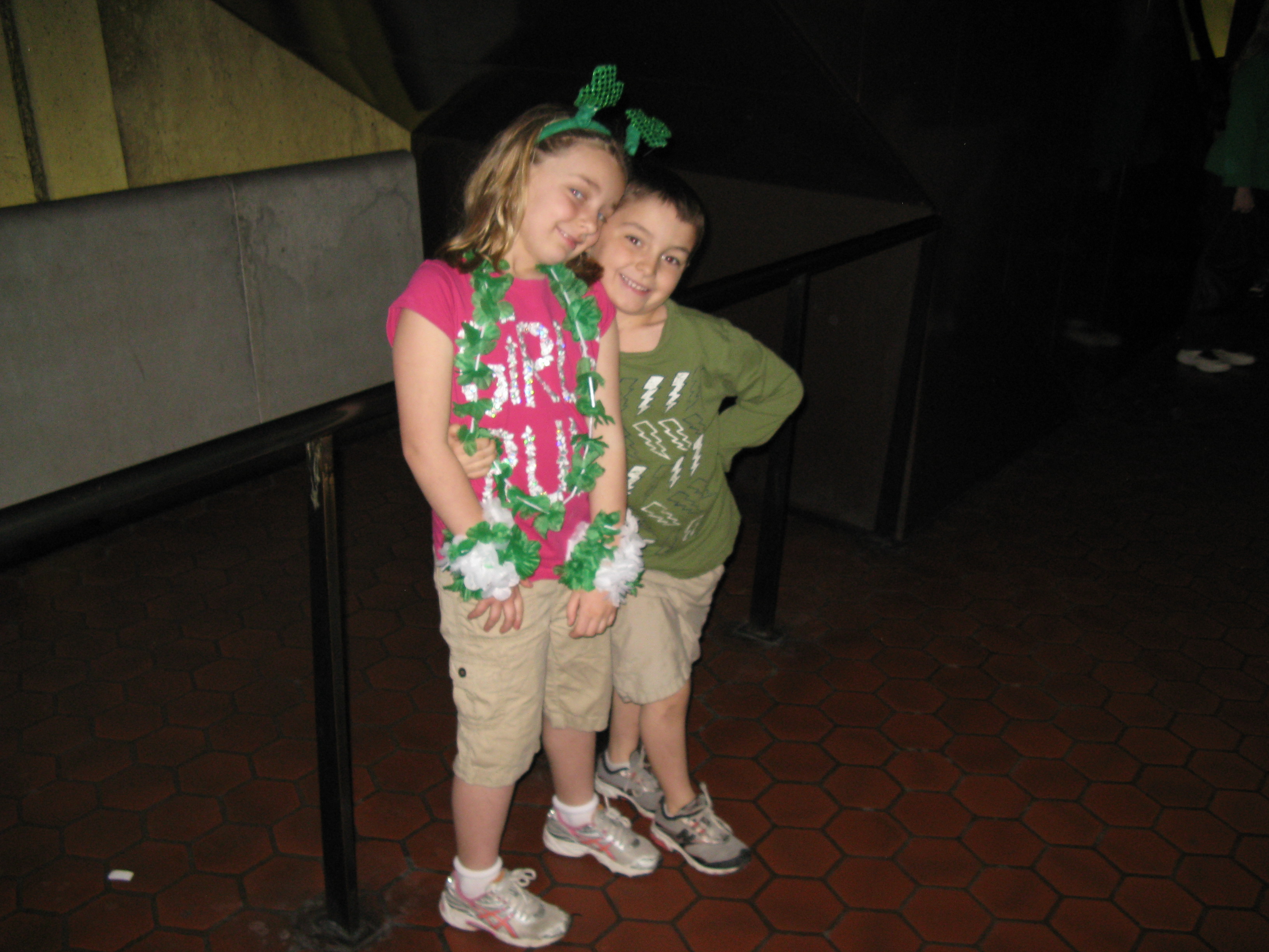 So, my niece and nephew, heretofore referred to as the Princess and the Conductor, came up last Friday night to spend the weekend.  Friday night, they helped me make a special Shamrock Cake – to be blogged separately – and then went to bed to rest up for the big day on Saturday.