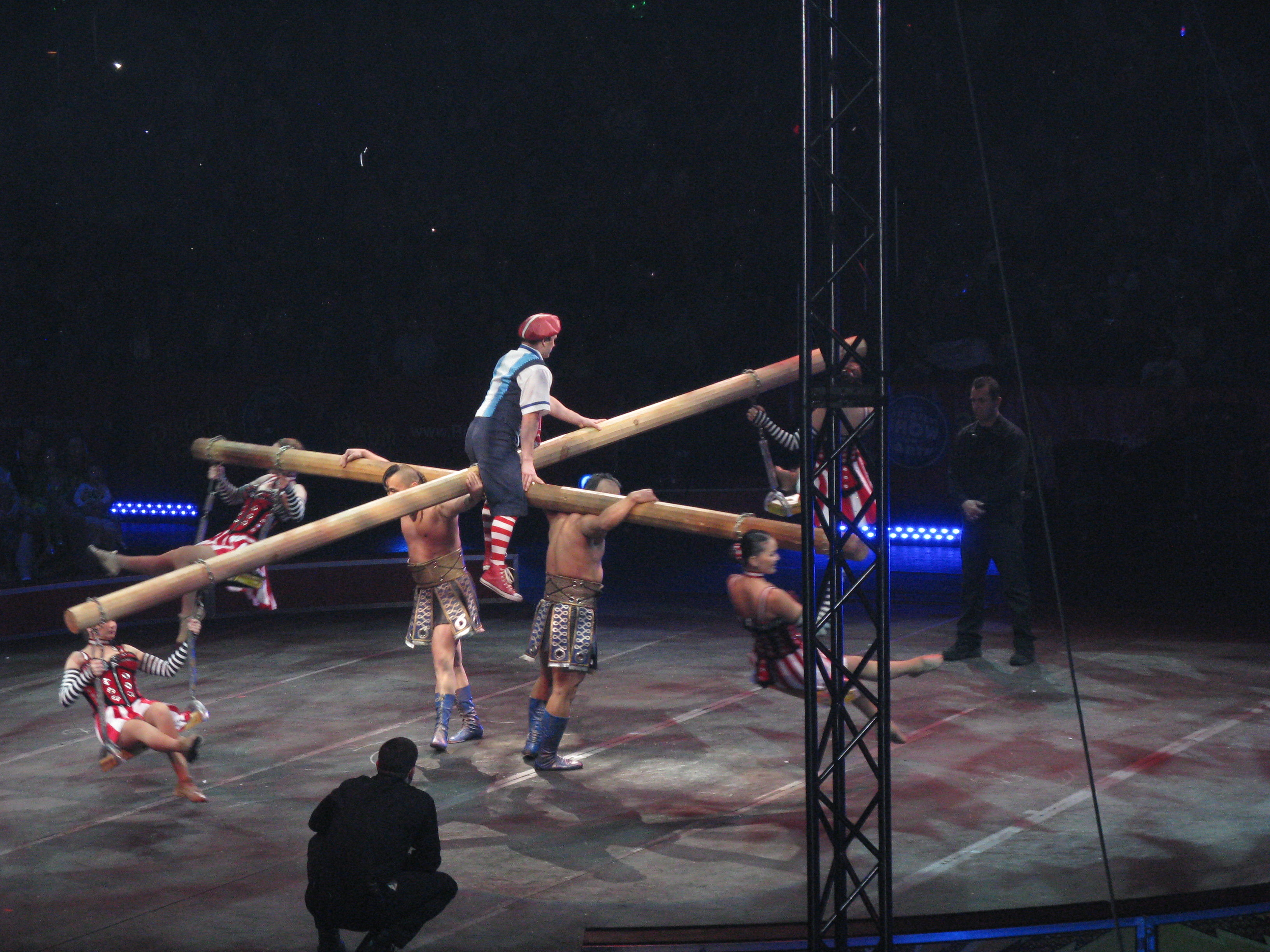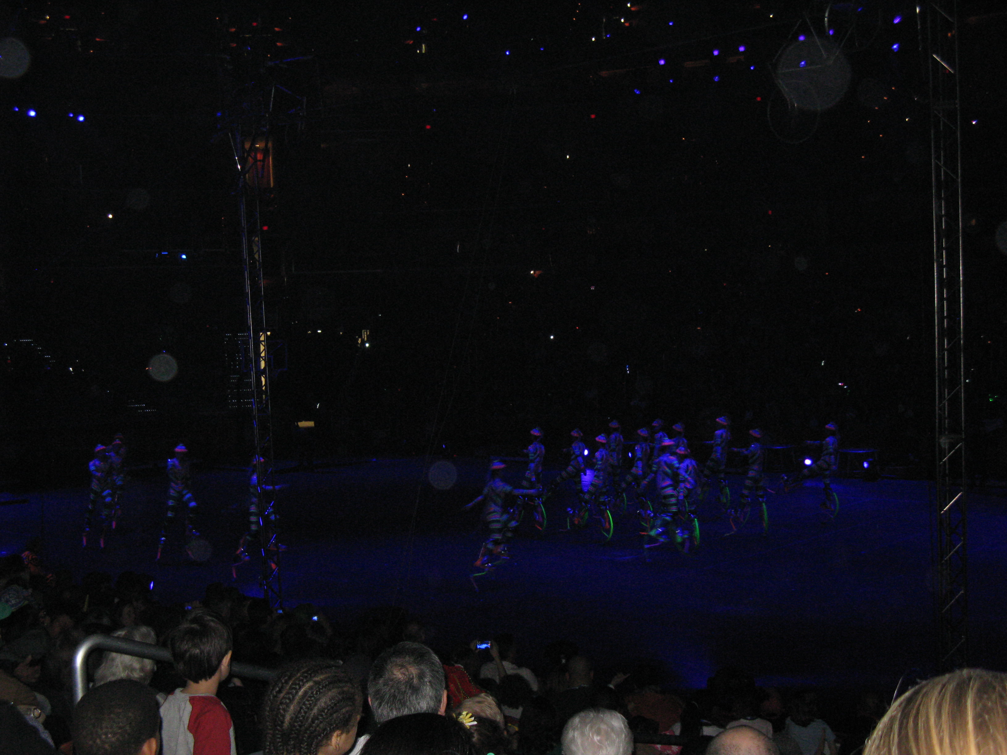 There was lots of other stuff I didn’t get pictures of – more clowns, tumblers, those guys who run around those giant hamster wheel things, oh – and the rope swingers, the ones who wrap the ropes (or fabric, really) around their hands or feet and slide down and back up.  Amazing.