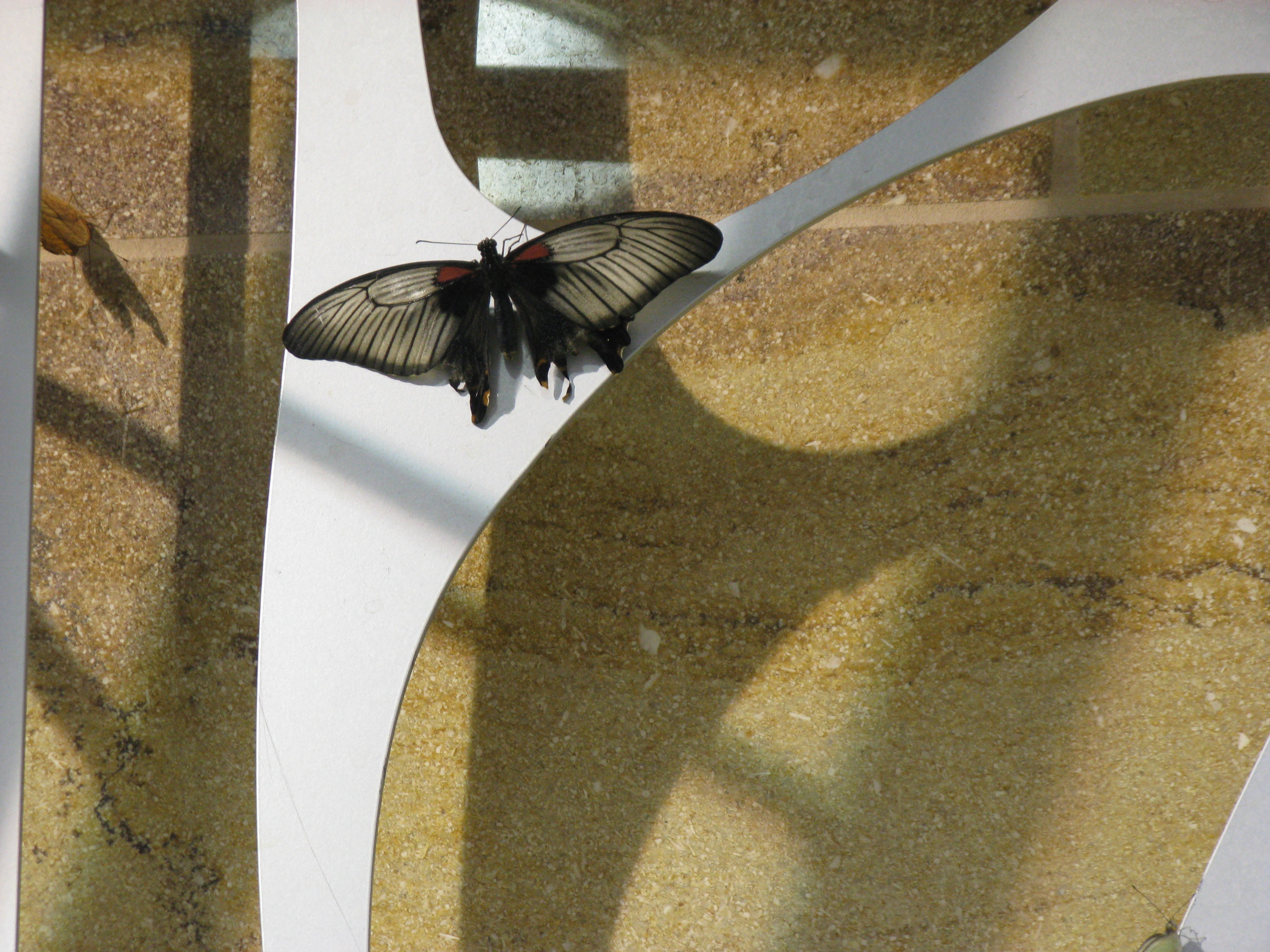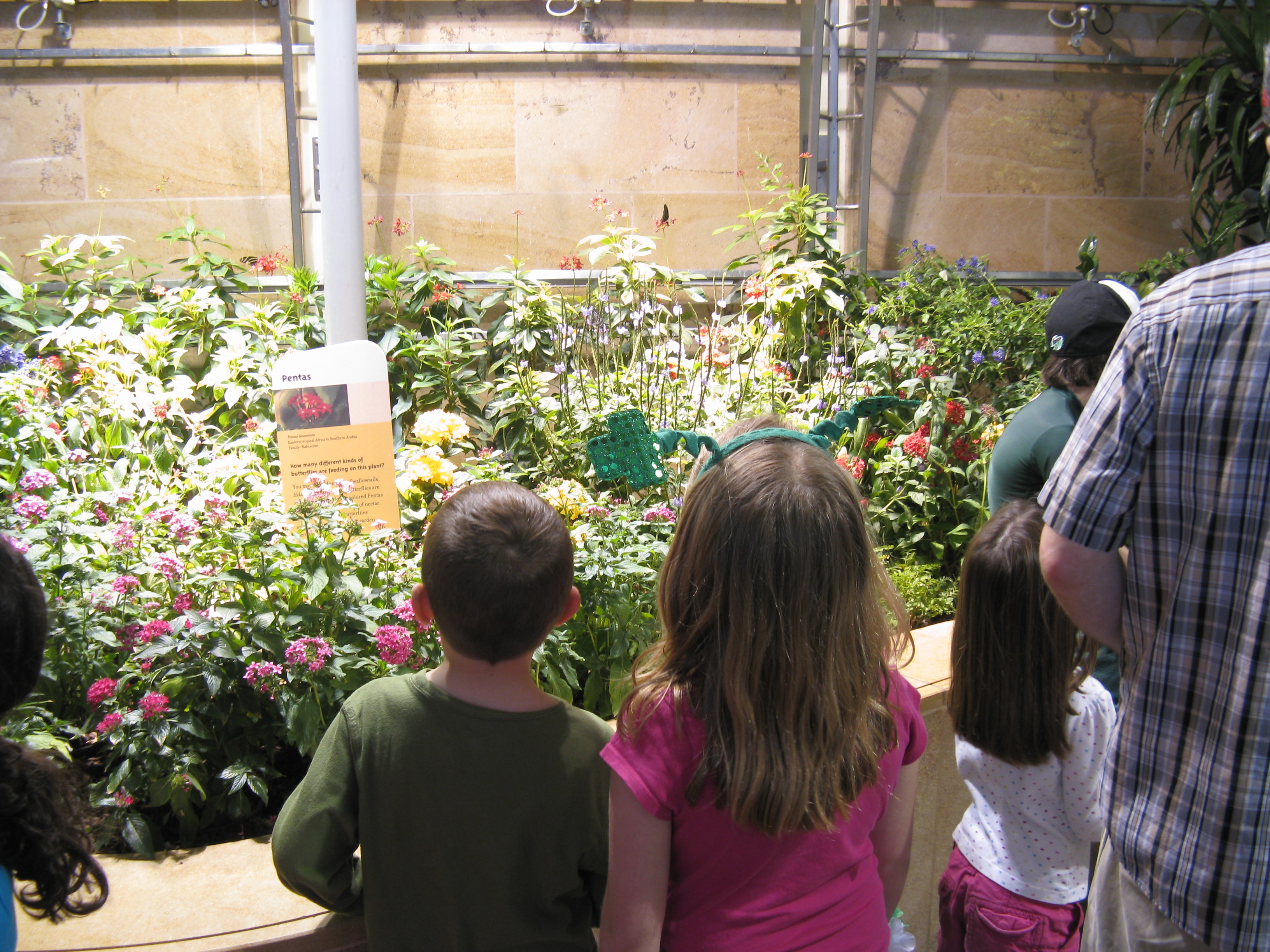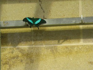 Finally, finally, after a walk through the gems and minerals hall, it was time for the big deal, the reason we came in the first place – a trip through the Butterfly Pavilion.  It was as neat and amazing as billed – walking through hundreds of live butterflies of all species, nothing between you and them but air.
